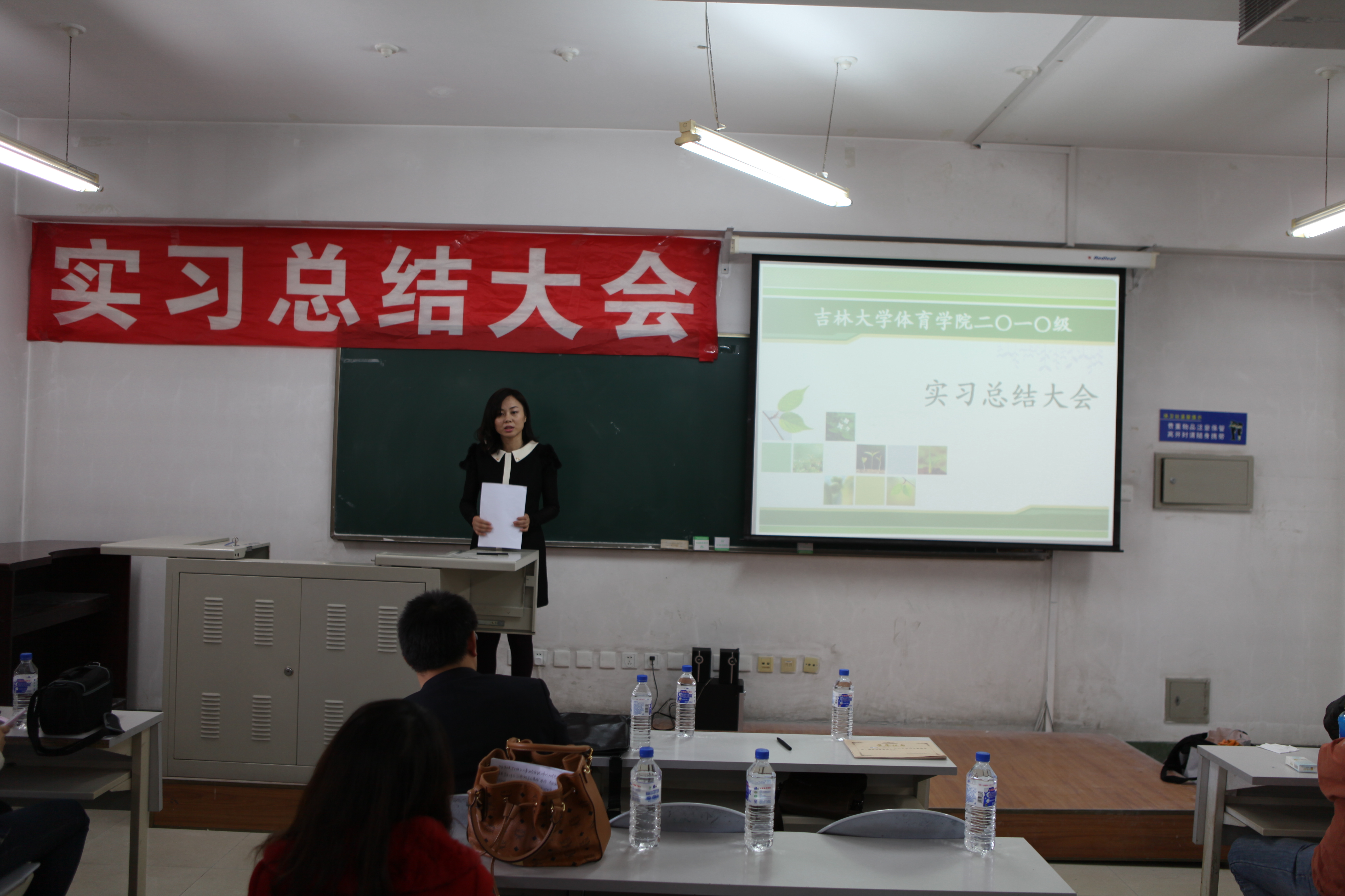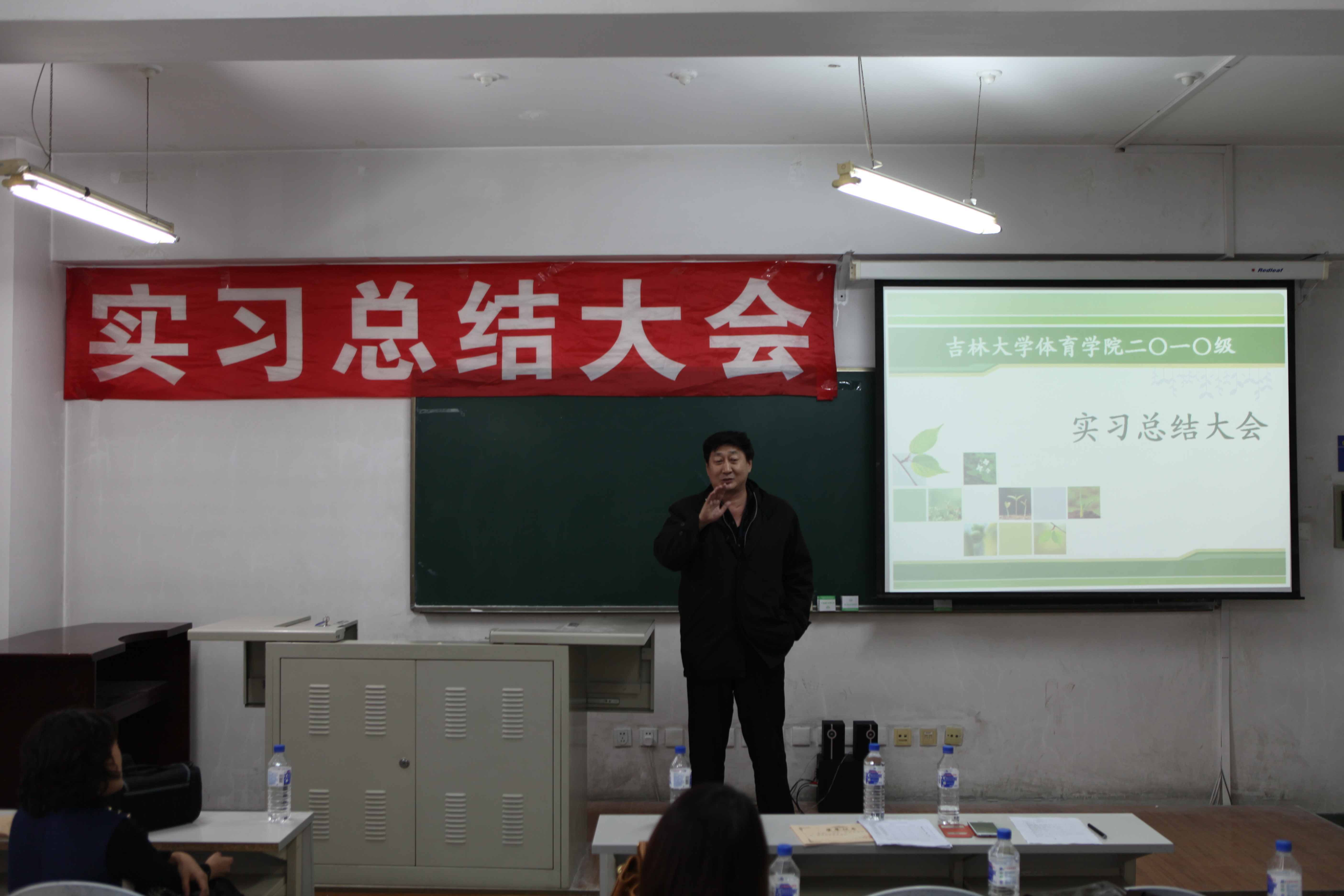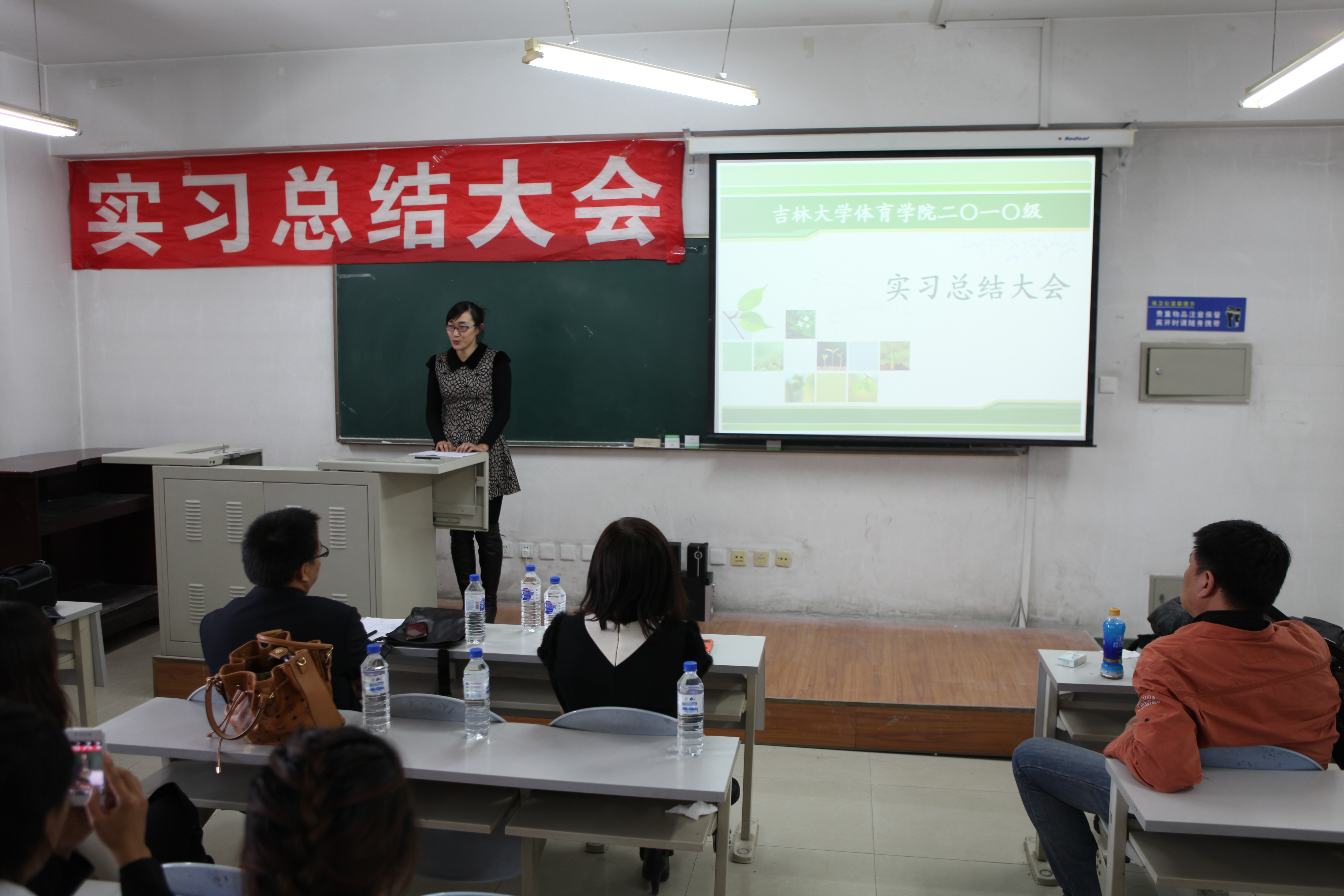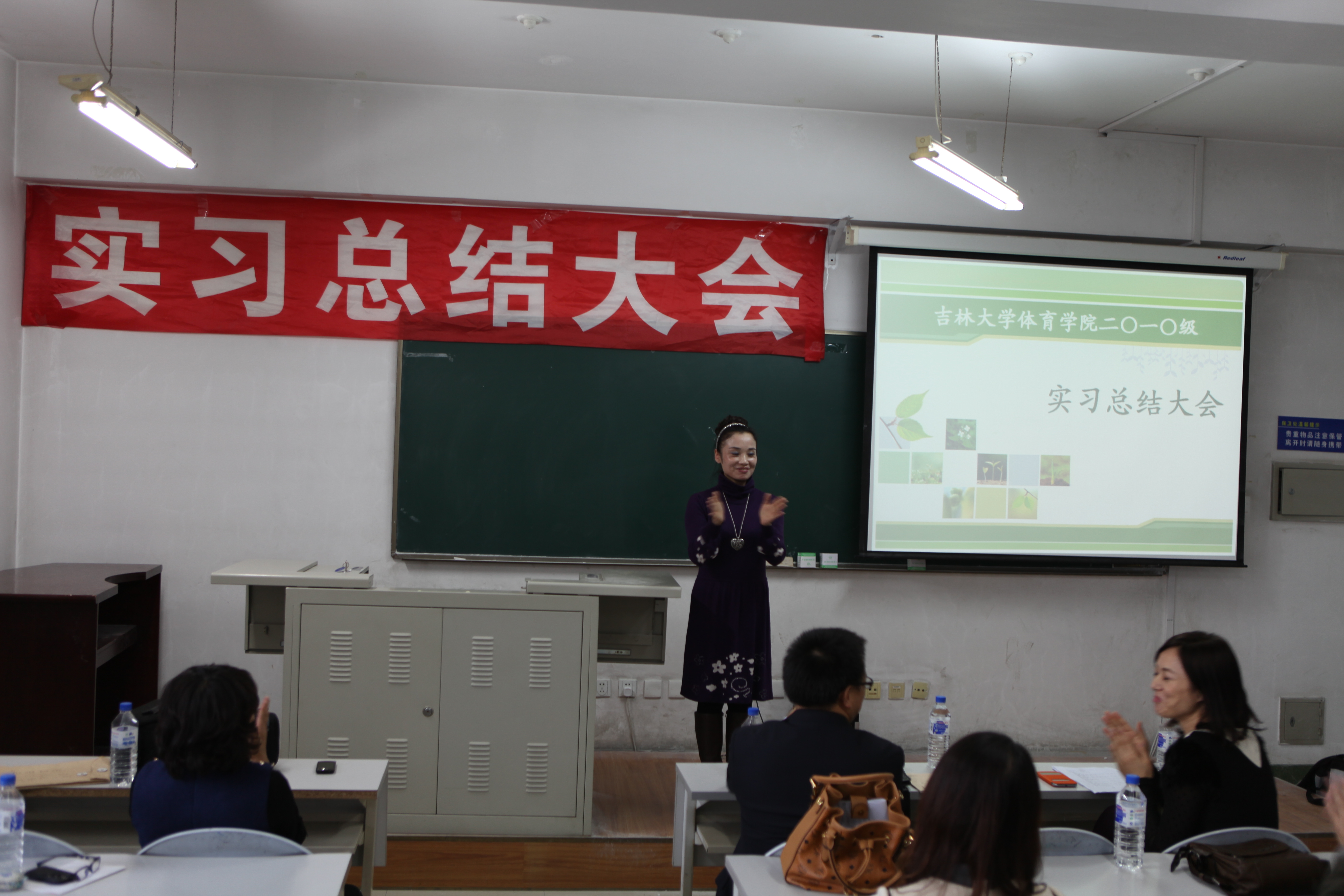 郭玉莲老师担任本次会议的主持人,一番意味深长的开场话语结束后,实习总结大会拉开了帷幕。大会第一项,副经理邹晓峰针对大四实习情况进行了详细的发言。在发言中,邹经理针对公司实习生在实习公司的表现提出了充分的表扬,给予了很高肯定。同时,也为我们分析了当下就业形势的严峻,鼓励公司实习生继续努力,求实创新,励志图强,争取找到一份理想的工作。大会第二项,由每个实习公司为一组,带队老师先发言,然后员工代表发言。本次在实习工作中一共设立了8个实习单位,它们分别是:师大附中、吉大附中、长春市第11高中、长春市第十七中学、长春市一汽六中、英派斯俱乐部、一汽幼儿园、北京师范大学附属中学。其中长春市一汽实验幼儿园,深圳市北京师范附属中学为新建实习单位。通过带队老师的发言我们了解到,公司的员工在逐步的成长,越来越趋近成熟,每一名带队老师发言的时候,脸上都带着难以掩盖的喜悦与骄傲。员工代表们更是精心准备了展示他们实习风采的PPT和难以言尽的实习感触。每名实习生在台上展示的时候,我们看到他们不仅仅是在教学理论与教学方法上有所进步,更为重要的是他们在做人,做事上的能力有着大幅度的提高,这点是让我们每个人为之欣慰的。大会第三项,与会的实习生自由发言,师大附中实习组的刘健婷同学将她在实习的两个月里所有的感触向我们倾诉,我们体会到,公司的实习生在实习的日子里过得是如此的充实与精彩。