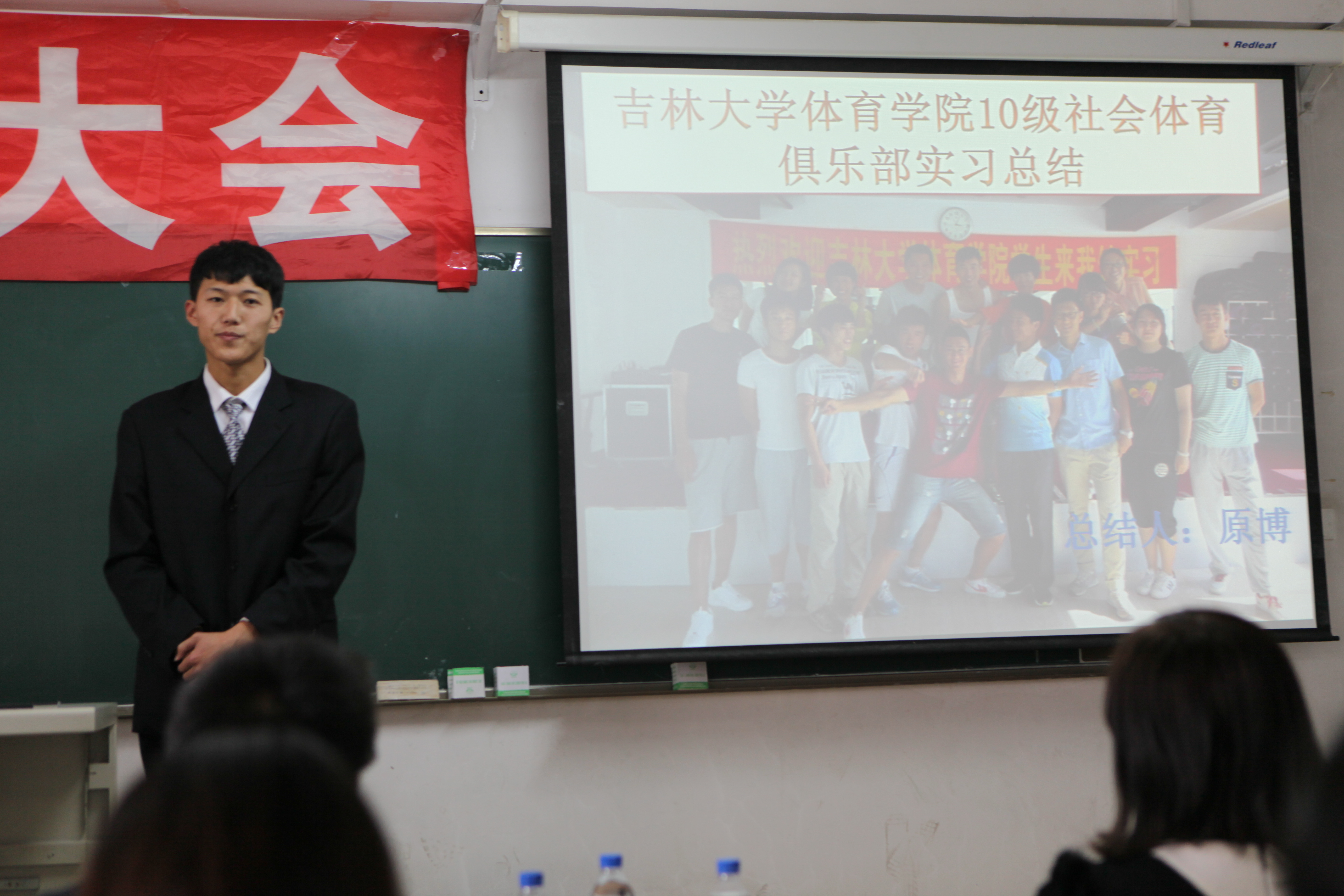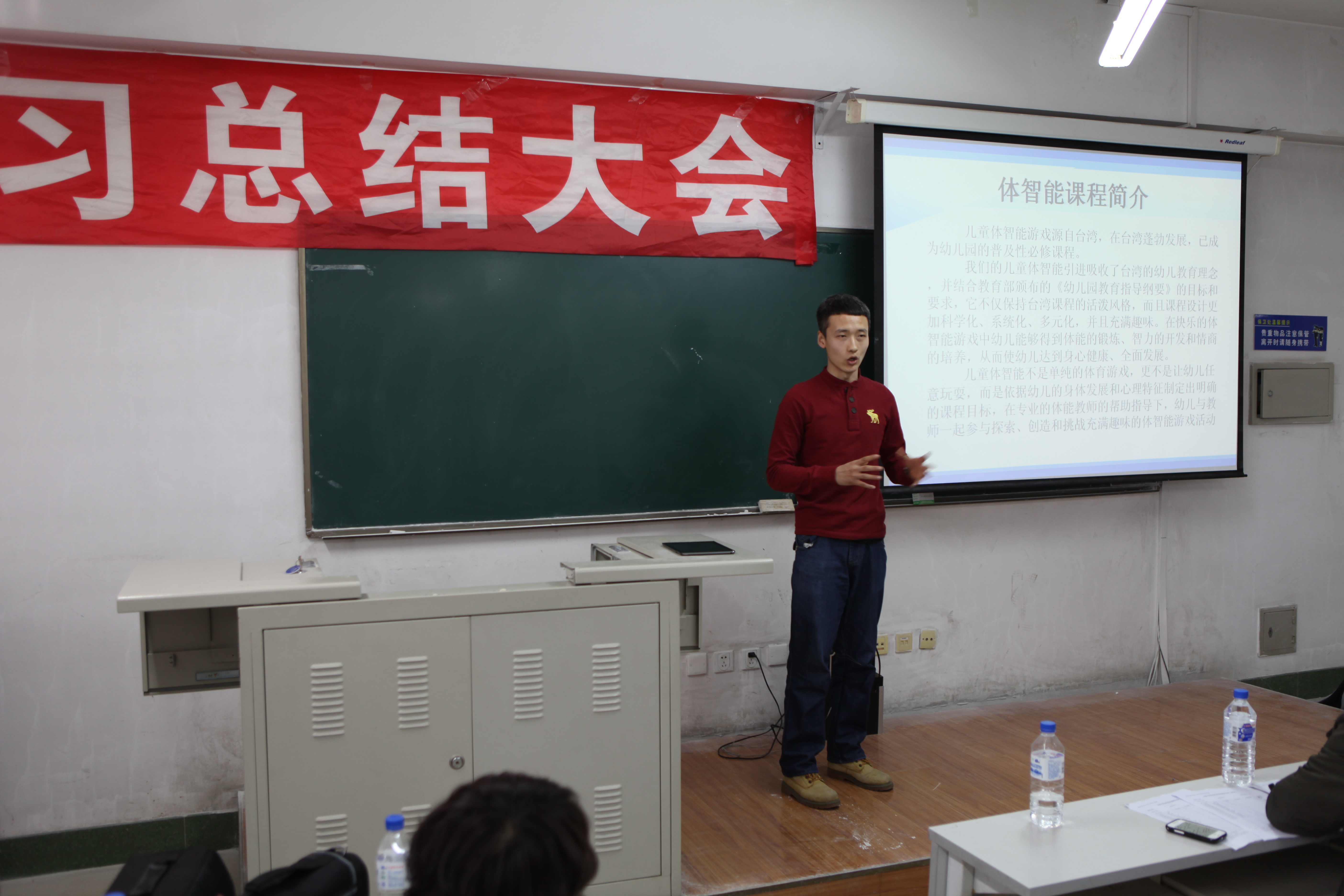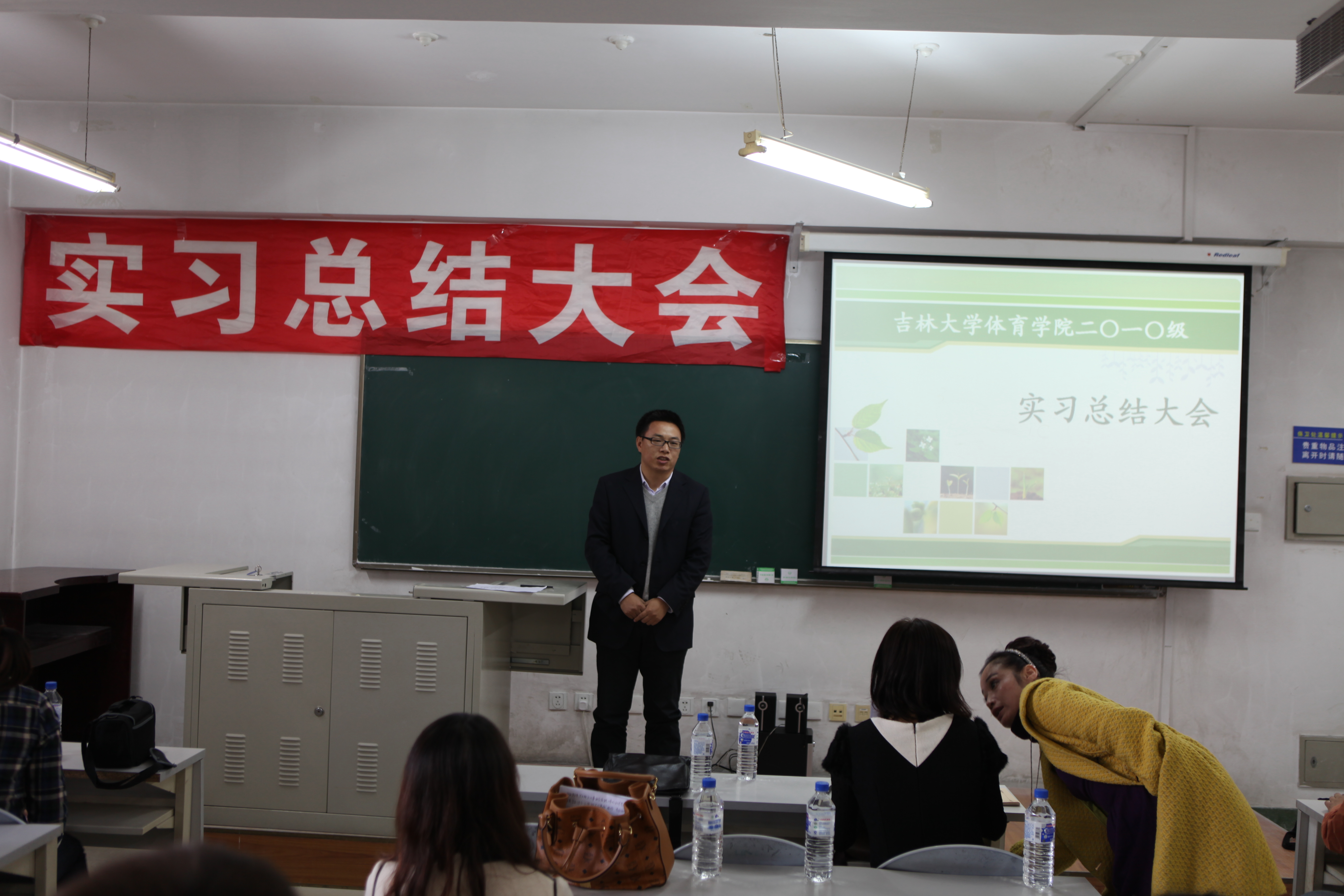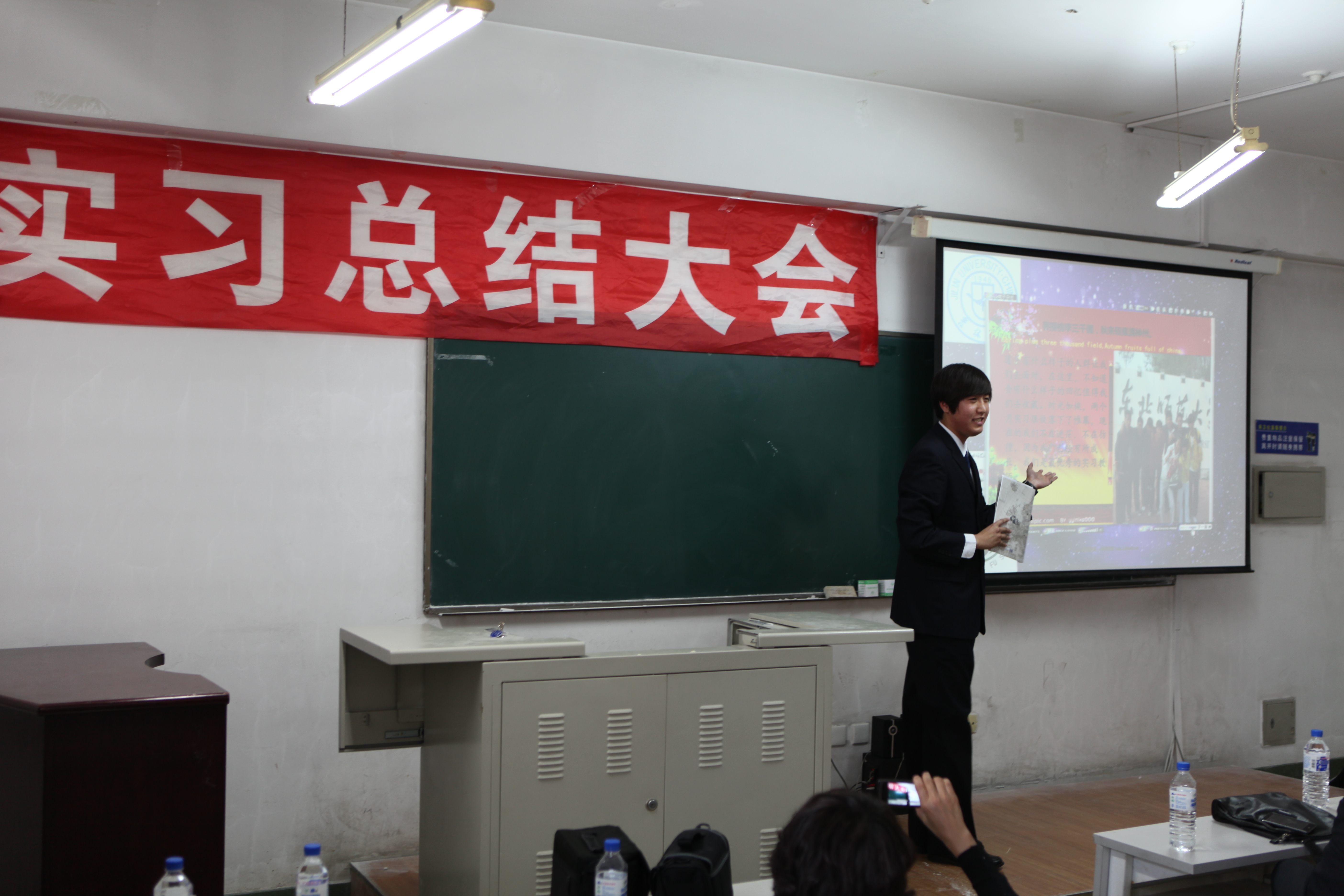 郭玉莲老师担任本次会议的主持人,一番意味深长的开场话语结束后,实习总结大会拉开了帷幕。大会第一项,副经理邹晓峰针对大四实习情况进行了详细的发言。在发言中,邹经理针对公司实习生在实习公司的表现提出了充分的表扬,给予了很高肯定。同时,也为我们分析了当下就业形势的严峻,鼓励公司实习生继续努力,求实创新,励志图强,争取找到一份理想的工作。大会第二项,由每个实习公司为一组,带队老师先发言,然后员工代表发言。本次在实习工作中一共设立了8个实习单位,它们分别是:师大附中、吉大附中、长春市第11高中、长春市第十七中学、长春市一汽六中、英派斯俱乐部、一汽幼儿园、北京师范大学附属中学。其中长春市一汽实验幼儿园,深圳市北京师范附属中学为新建实习单位。通过带队老师的发言我们了解到,公司的员工在逐步的成长,越来越趋近成熟,每一名带队老师发言的时候,脸上都带着难以掩盖的喜悦与骄傲。员工代表们更是精心准备了展示他们实习风采的PPT和难以言尽的实习感触。每名实习生在台上展示的时候,我们看到他们不仅仅是在教学理论与教学方法上有所进步,更为重要的是他们在做人,做事上的能力有着大幅度的提高,这点是让我们每个人为之欣慰的。大会第三项,与会的实习生自由发言,师大附中实习组的刘健婷同学将她在实习的两个月里所有的感触向我们倾诉,我们体会到,公司的实习生在实习的日子里过得是如此的充实与精彩。