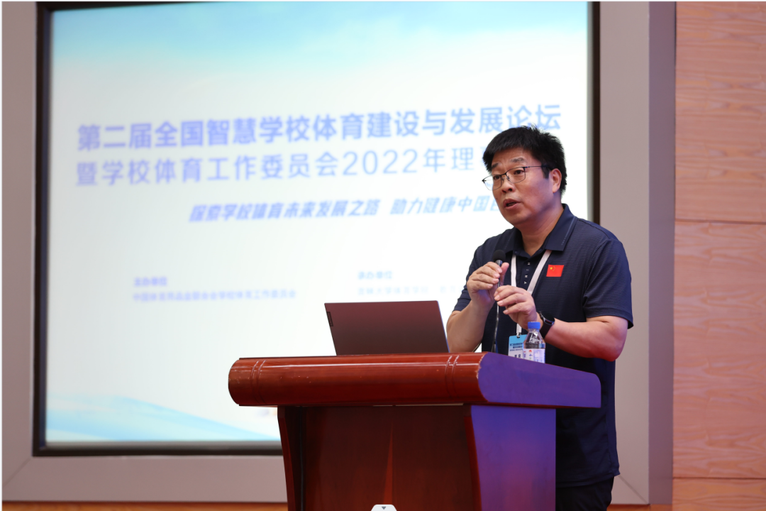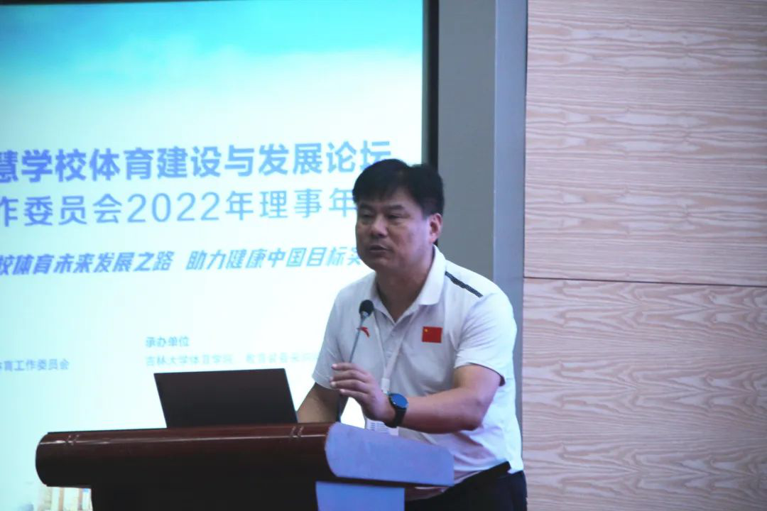 学工委理事长、北京大学郝光安教授作了《新时期普通高校体育工作新思路》报告,他向参会代表分享了北京大学、清华大学、厦门大学等多所高校及部分中小公司开展体育教学改革、体教融合的案例,介绍了新的发展背景下,公司体育的新理论和新思想。同时,他还介绍了学工委成立以来取得的主要工作业绩,并就学工委下一步相关工作做了部署安排。