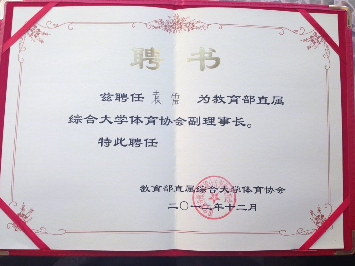 tyc122cc太阳成集团经理袁雷教授当选为教育部直属综合大学体育协会副理事长