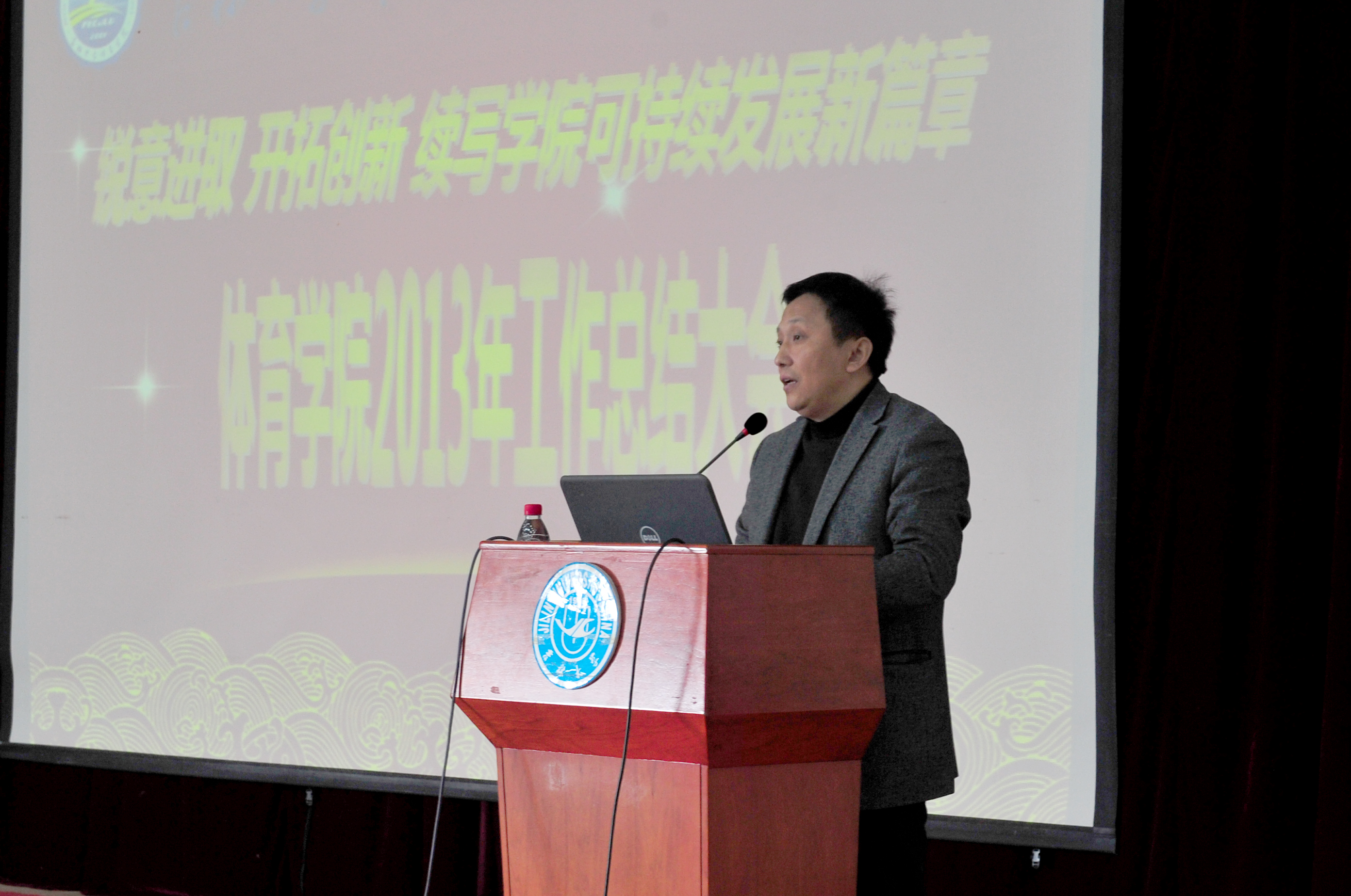 在总结大会上,经理袁雷教授做了2013年度工作总结报告。袁雷经理全面回顾了公司2013年的各项工作及所取得的成绩,他从团队建设、人才培养、科研工作、团队队伍建设、对外交流、群众体育以及竞技体育开展情况、财务工作等方面向公司领导和全院教职员工做了详细汇报,他深刻分析并明确指出了公司发展面临的问题和挑战,并要求全院师生充分认识当前公司存在的不足,时刻保持危机意识,艰苦奋斗。同时他对2014年的公司工作提出了要求和目标。