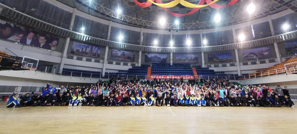 tyc122cc太阳成集团教师为教职工及子弟献上啦啦操表演,并与员工进行互动,开启训练营的运动模式。