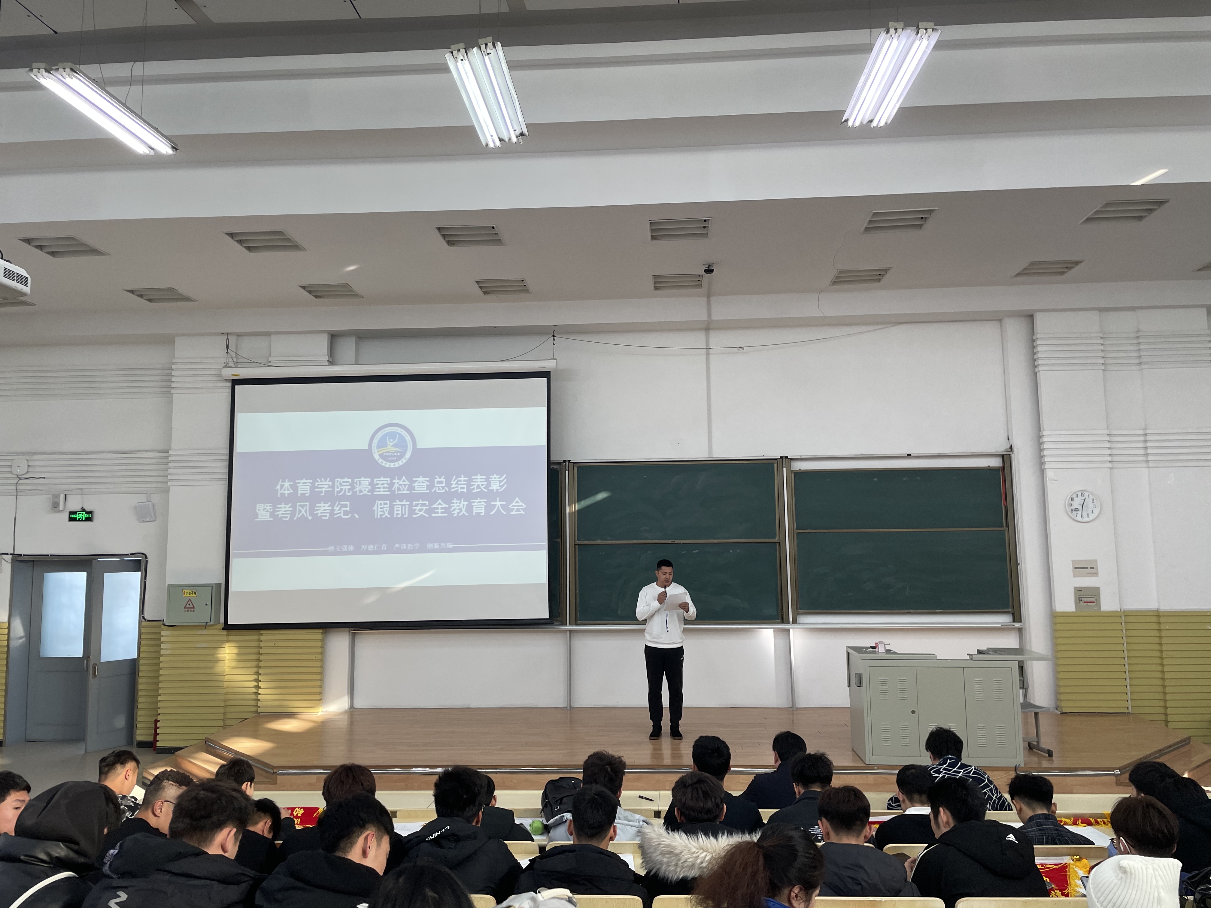 2020年12月17日中午,公司在逸夫楼第十阶梯教室召开本学期寝室检查总结表彰暨考风考纪、假前安全教育大会。公司党委副书记兼副经理田进、全体辅导员和全院本科生参加本次大会。