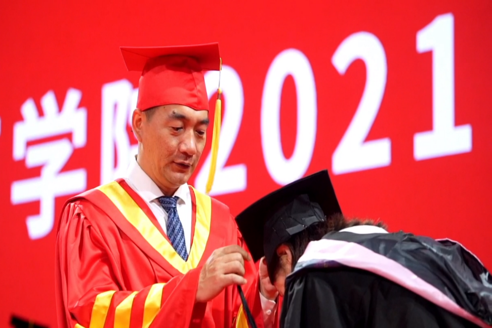 2021届毕业典礼暨学位授予仪式在庄严的国歌声中拉开帷幕。首先,副经理王祥全教授宣读了《公司关于授予2021届毕业生学位的决定》。tyc122cc太阳成集团经理、学科学位评定分委员会主席裘鹏教授为毕业生拨穗授位;副经理刁振东教授为毕业生颁发学位证书。