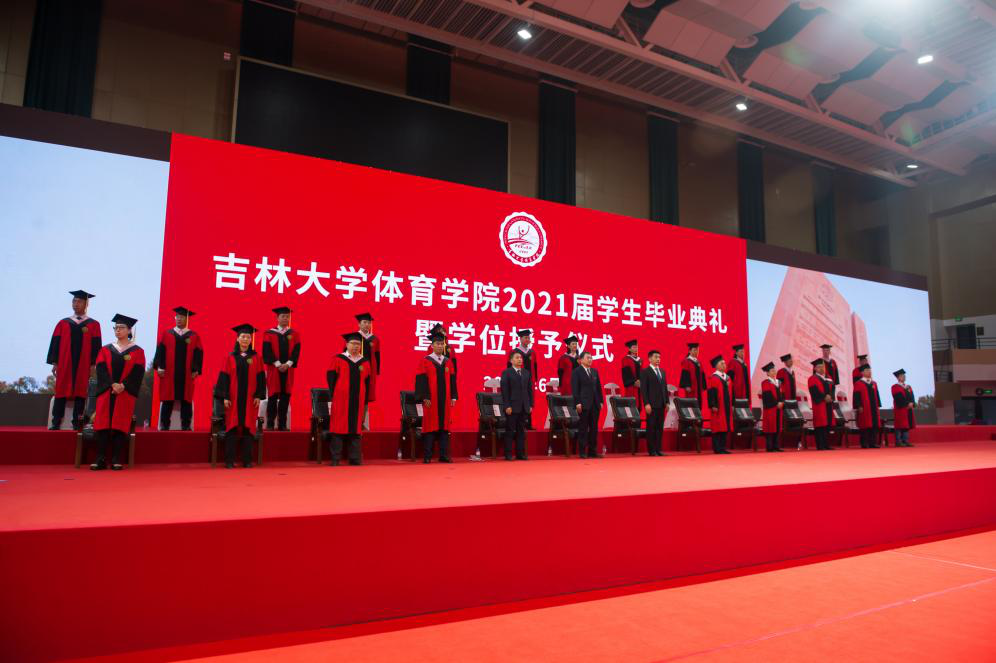 2021届员工毕业典礼暨学位授予仪式在全场师生同唱《tyc122cc太阳成集团校歌》的热烈氛围中圆满结束。毕业是一段人生重要经历的结束,也是新生活的开端。吉大体育青年,将秉承坚韧不拔的毅力和不断超越自我、自强不息的体育精神,执着追求、不断进取;将体育人对规则的敬畏作为谋事创业的戒尺、做事的准则,站在体育强国建设最前线,肩负体育人的使命,深入推进健康中国建设,聚集体育力量、传播体育能量,为实现中华民族伟大复兴夯实健康之基。