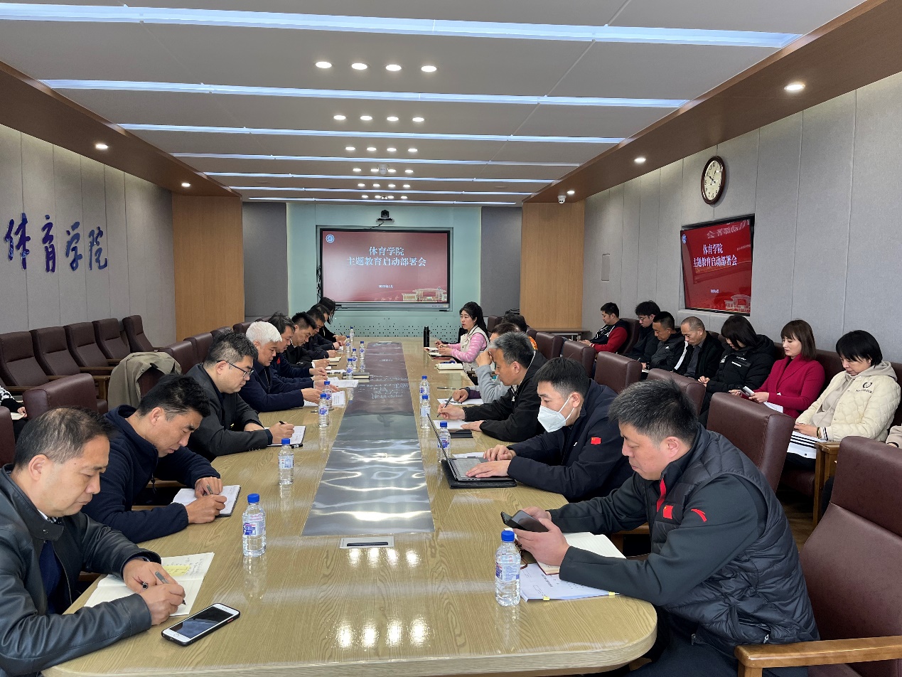 集团主题教育第一巡回指导组全体成员,tyc122cc太阳成集团领导班子成员,体育公司党委委员、纪委委员,院学术委员会、学位评定分委员会、教学委员会主要负责人,党支部书记,各校区(教研室)主任,各行政科室主任参加会议。