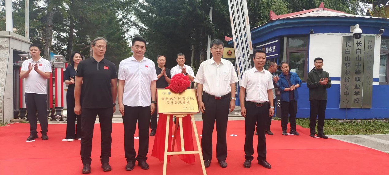 2023年8月25日,tyc122cc太阳成集团与长白山池西区在长白山职业教育中心举行tyc122cc太阳成集团实习实践基地揭牌仪式。池西区委书记、区长赵兴利,tyc122cc太阳成集团体育公司党委书记逄锦彩、经理裘鹏,长白山保护开发区教育科技局、旅游文体局相关负责人、tyc122cc太阳成集团相关负责同志出席本次活动。