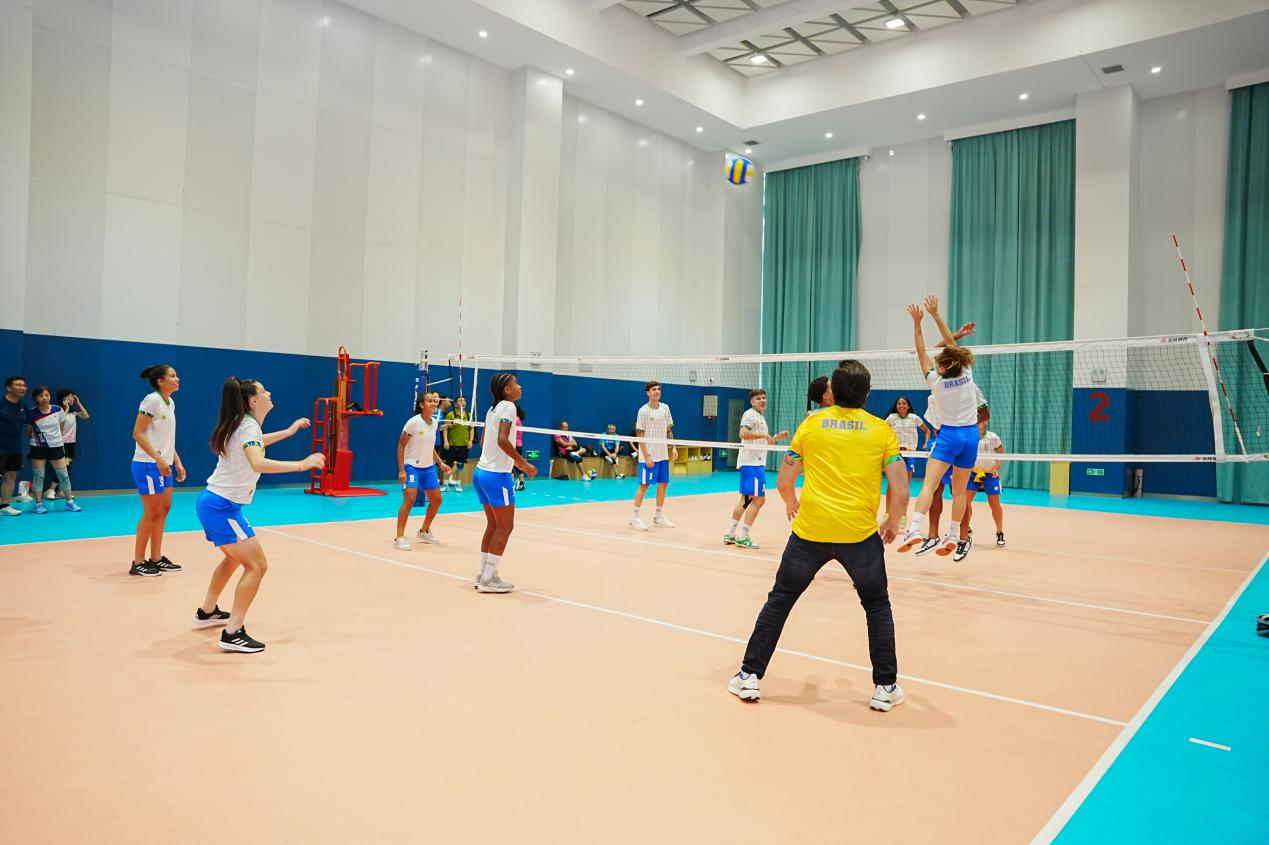 9月12日上午,交流座谈在宋治平体育馆篮球馆拉开帷幕。中巴双方师生围绕“体育训练体系建设”、“校园赛事组织与运营”、“体育文化育人价值”三大核心议题展开热烈研讨。巴西代表团以南美足球青训为切入点,分享了校园体育“活力化”运营的经验;公司师生则重点介绍了中国高校体育课程改革、体教融合实践及校园体育品牌化探索。交流现场气氛热烈,多元的观点碰撞为双方校园体育育人路径提供了新启发。
