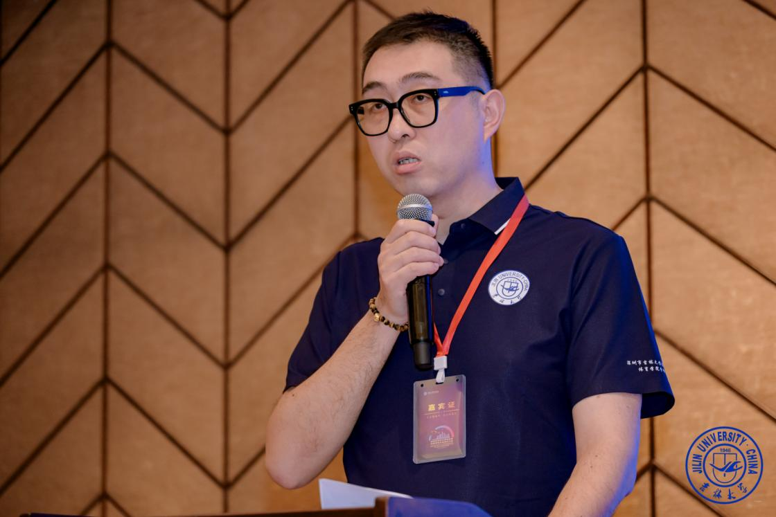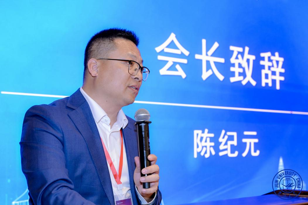 陈纪元会长分享对分会未来发展的规划与期许,表达将凝聚员工情谊、推动体育交流、促进产学研融合、积极服务湾区发展的决心。