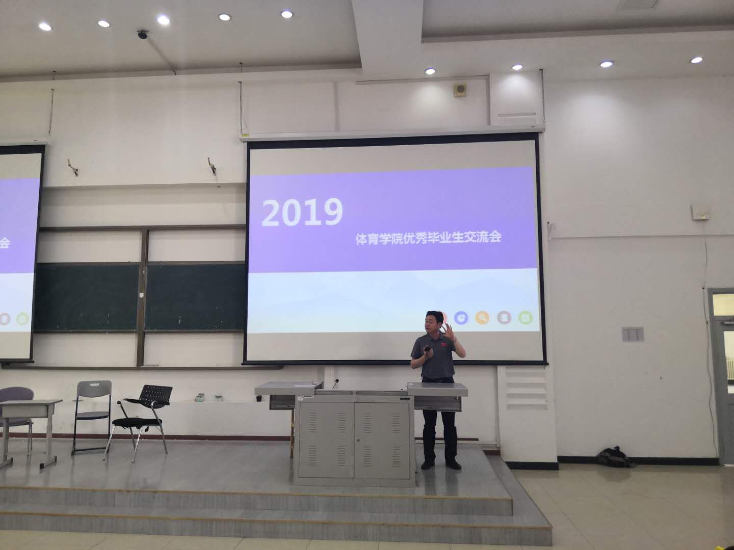 2019年6月23日下午13点30分,公司在经信教学楼F区第一阶梯教室举办了优秀毕业生经验分享交流会。公司党委书记逄锦彩、党委副书记兼副经理田进、辅导员王赫谊、优秀毕业生代表、以及全院本科员工参加了本次交流会。
