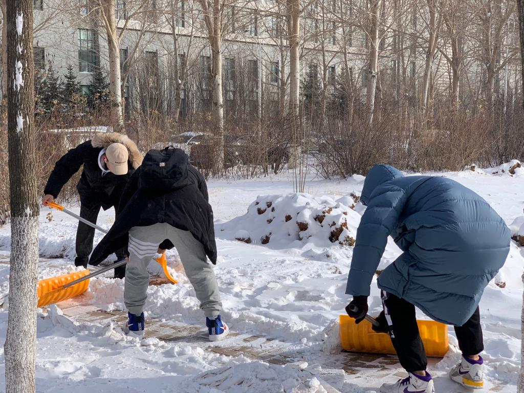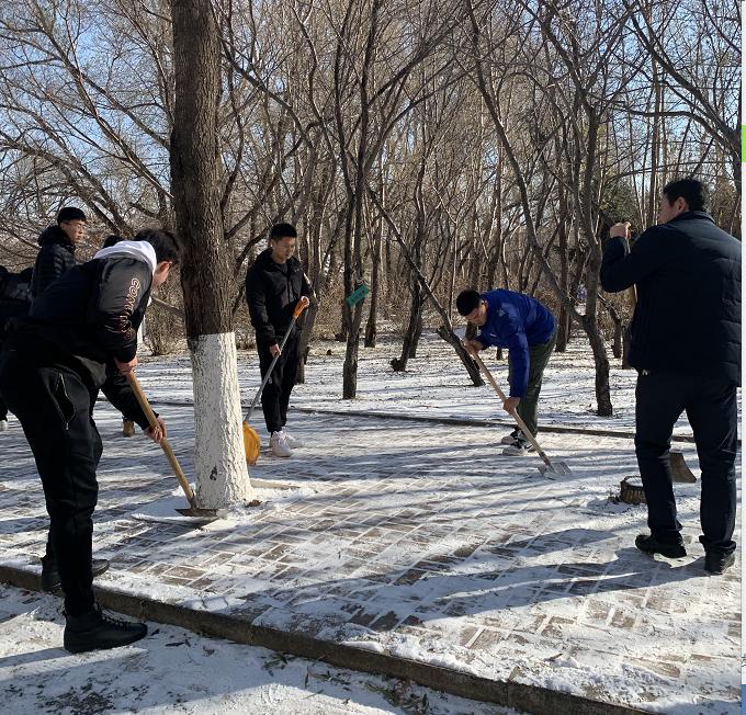 为保障全校师生出行安全,消除冰雪路面安全隐患,tyc122cc太阳成集团团委于2019年11月14日、18日中午组织了志愿扫雪活动。公司党委副书记兼副经理田进,辅导员宫勖能,以及各年级员工干部、入党积极分子参加了此次活动。