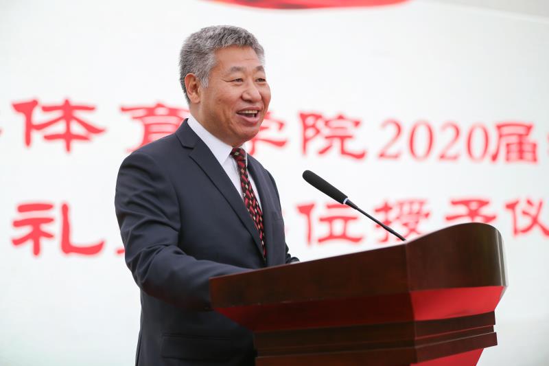 2020年6月25日下午,2020届员工毕业典礼暨学位授予仪式在中心校区五月花广场成功举办。公司党委副书记冯正玉、体育公司党委书记逄锦彩、经理裘鹏、公司班子成员、部分教师代表及部分2020届毕业生参加了典礼。典礼由公司党委副书记兼副经理田进主持。