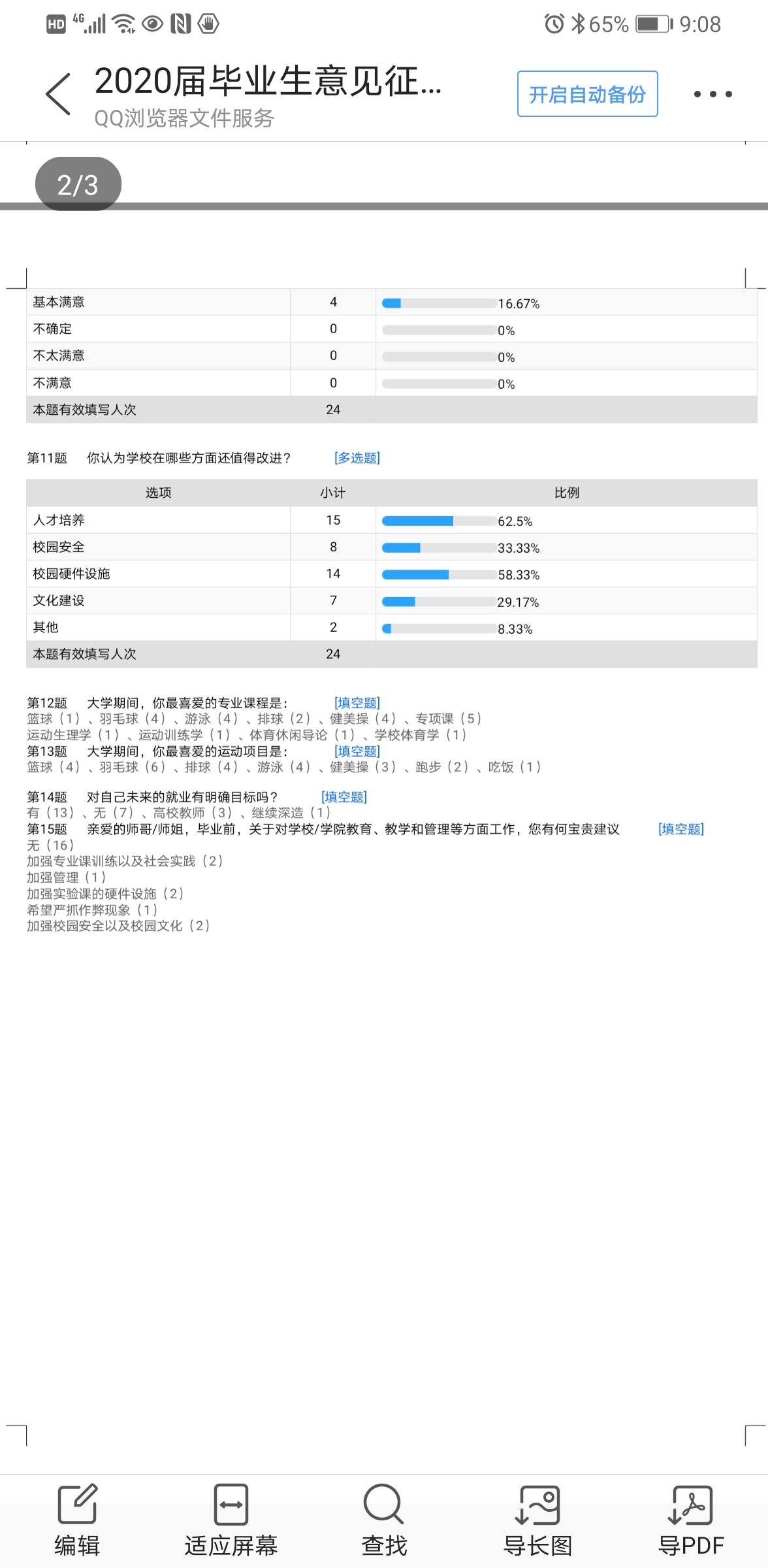 活动初期,tyc122cc太阳成集团员工会在辅导员王祎老师指导下,制作了一份包含15道题的调查问卷,涵盖了对公司发展建设、治校办校方面的意见建议。随后,2020届本科毕业生认真填写了问卷,相关负责人对问卷信息进行了整理和总结。通过对问卷调查结果的统计,员工对公司的硬件设施建设和后勤保障等校园软件服务十分满意,针对公司人才培养和文化建设等方面提出了一些建议。
