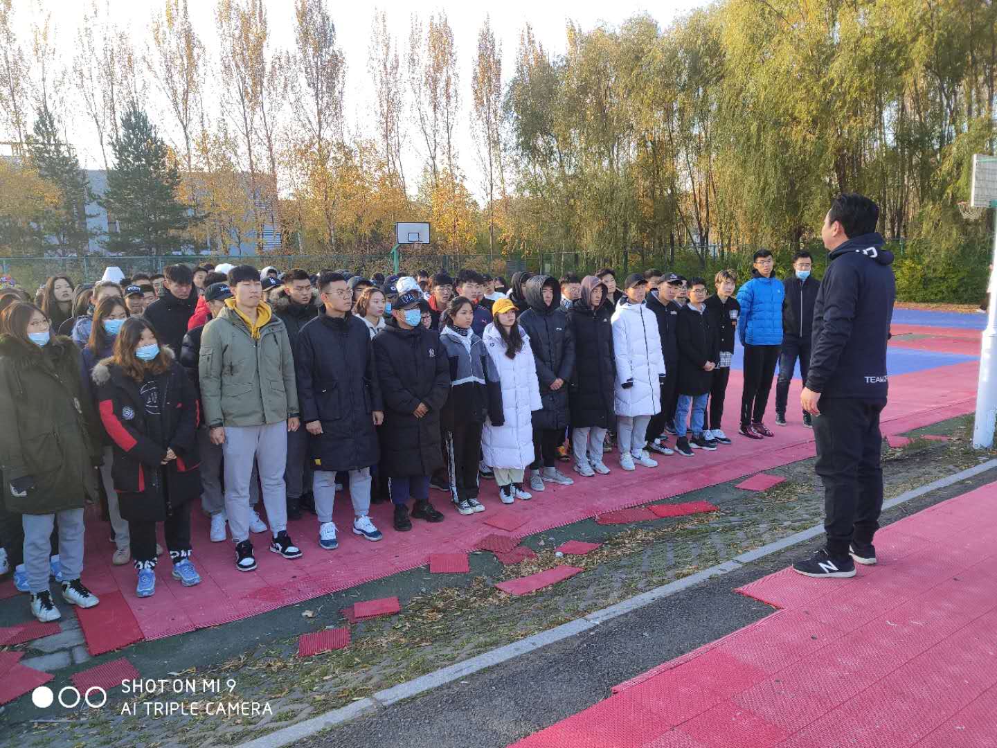 公司分管领导及辅导员每天亲临现场和同学们一起活动,期间,田进副书记进一步强调了早操的目的和意义,并提出了相关要求,要从出勤情况、队列整齐度、口号嘹亮度、精神面貌等方面做好考核,阶段性评选早操先进班级,并以颁发流动红旗的方式进行表彰奖励。