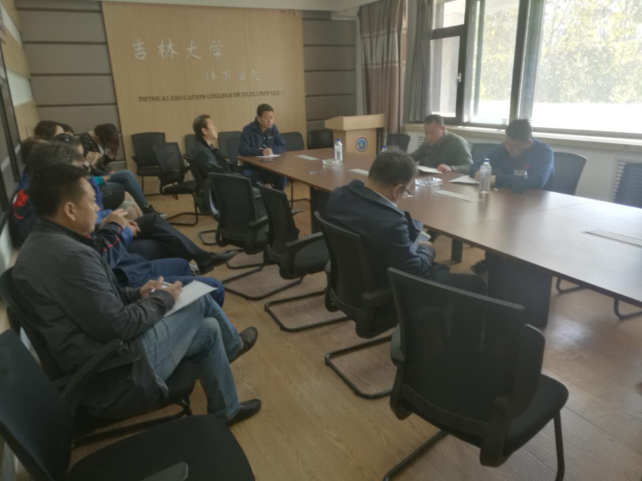 2017年9月30日上午8点30分,在体育馆二楼会议室召开关于加强研究生安全稳定工作的会议,体育公司党委书记逄锦彩及全体导师参加了会议,会议由李廷奎副经理主持。