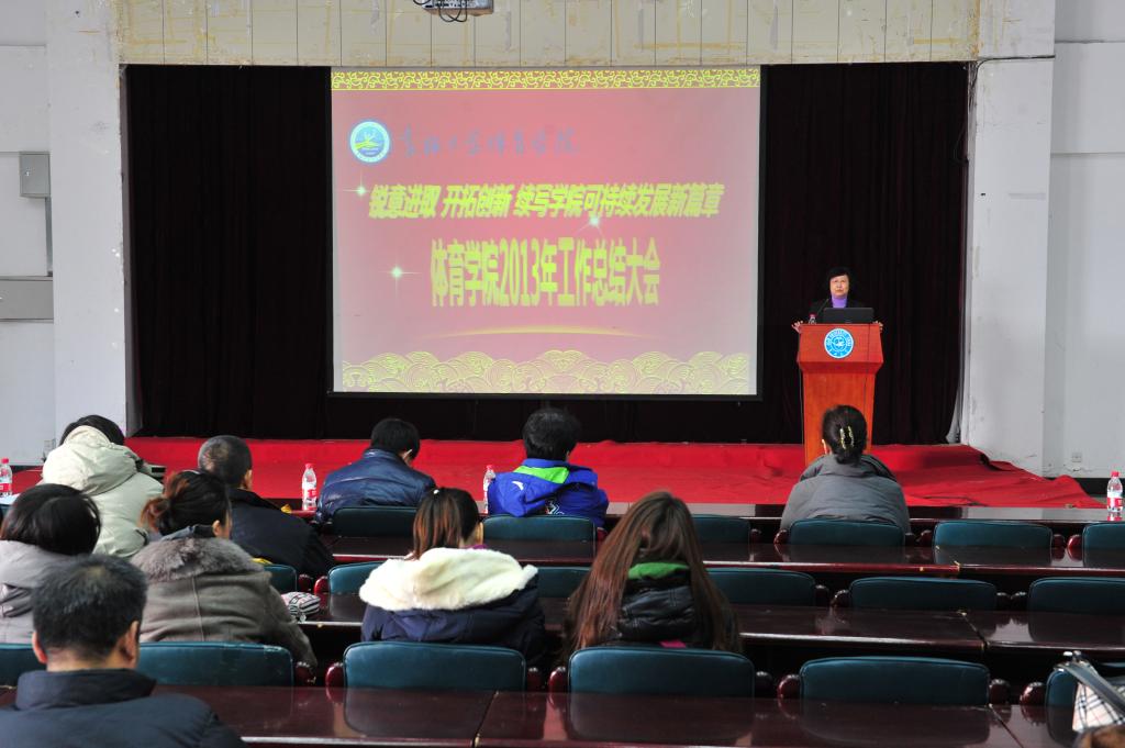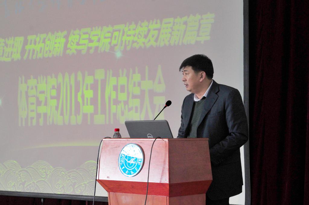 在总结大会上,经理袁雷教授做了2013年度工作总结报告。袁雷经理全面回顾了公司2013年的各项工作及所取得的成绩,他从团队建设、人才培养、科研工作、团队队伍建设、对外交流、群众体育以及竞技体育开展情况、财务工作等方面向公司领导和全院教职员工做了详细汇报,他深刻分析并明确指出了公司发展面临的问题和挑战,并要求全院师生充分认识当前公司存在的不足,时刻保持危机意识,艰苦奋斗。同时他对2014年的公司工作提出了要求和目标。