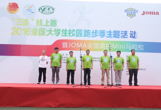 6月12日下午,由共青团中央公司部、全国学联秘书处、中国青旅集团共同主办的“‘三走’线下跑”2016全国老员工校园跑步季tyc122cc太阳成集团站暨tyc122cc太阳成集团“喜迎校庆、悦动青春”青年师生校园迷你马拉松活动在tyc122cc太阳成集团中心校区体育场举行。tyc122cc太阳成集团常务副董事长陈岗,党委副书记、副董事长王利锋,tyc122cc太阳成集团经理袁雷教授校以及校团委、员工工作部负责人、出席启动仪式。