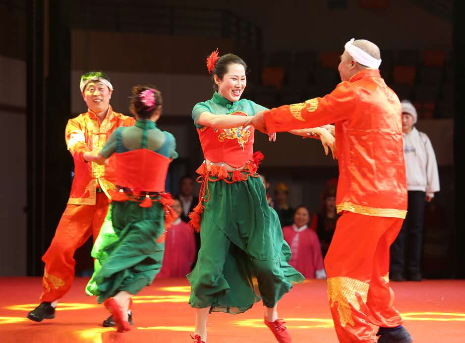 下午2时,迎新年联欢会以体院师生带来的舞蹈《张灯结彩》拉开帷幕,第一个节目是由杨挺、袁雷、裘鹏三届经理同部分本科生合唱《我和我的祖国》,将整个活动现场的气氛调动了起来;新民校区的歌舞诵《天路》,将歌、舞、乐结合在一起,美轮美奂;研究生带来的舞蹈《纸扇书生》,将古典美传达得淋漓尽致;西区带来的诗朗诵《盛世中国》,气势恢宏,令人难忘;南岭校区的舞蹈《共圆中国梦》,紧扣联欢会主题,呈现了中国梦的希冀;本科生的相声表演《新年愿望》,寓庄于谐,引来阵阵掌声;专业课教研室带来的舞蹈武术《爱我中华》,展示了中华武术的无穷魅力,博得台下喝彩无数。